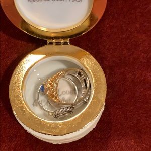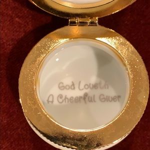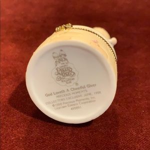 NEW miniature Precious Moments figurine “God Loveth a cheerful giver” jewelry box. Collectors exclusive! Measures just under 3” high with a 1.75” diameter. Cute way to give a gift of jewelry or to store some jewelry. See photo for idea - rings not included. These are new and come with box but it is not a PM box. See photo.