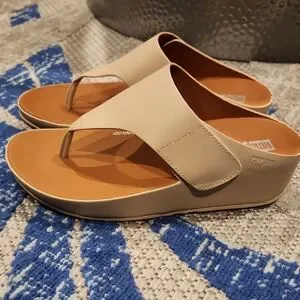 NWOB- Women's Fitflop SHUV Leather Upper Cream Sandals With Adjust. Strap Size 7