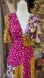 • Design: The dress combines floral and polka dot patterns in shades of pink, yellow, white, purple, and brown. It features a twist-knot detail at the deep V-neck, short flutter sleeves, and an asymmetrical hem.