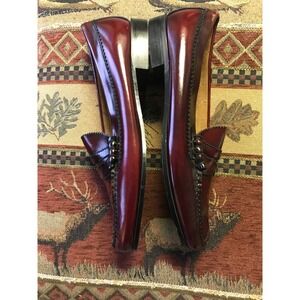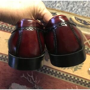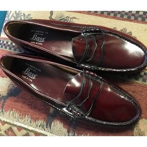 GH Bass & Co burgundy penny loafers for men. Classic design with traditional penny strap detailing and a smooth polished finish. These versatile loafers are perfect for elevating your professional attire or adding a touch of sophistication to smart casual outfits. Preowned. Excellent condition