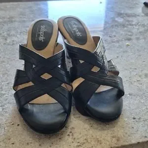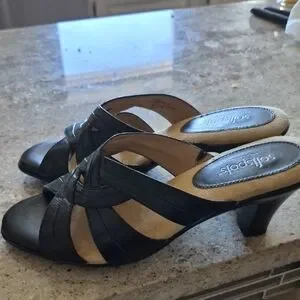 Chic black mules with crisscross straps. Comfortable and stylish for any occasion. leather