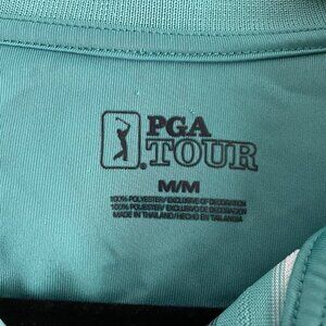PGA Tour Men Sz M Teal Striped S/Sleeve Collared 3 Button Casual Polo Golf Shirt