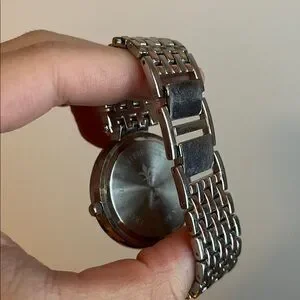 Elegant silver women's watch with a quartz movement. Perfect for adding a touch of sophistication to any outfit. No missing stones. Needs batteries. Fits about 7”. Links can be added or removed.