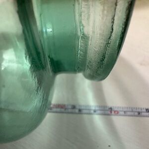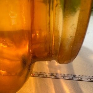 Beautiful set of three glass jars in green, orange, and blue. Each jar features a stylish wooden lid. Perfect for kitchen or decorative use. Some color pealing, please see photos.