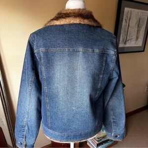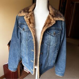 Vintage Marvin Richards Blue Denim Jean Jacket Faux Fur Lined Sz Medium 90s Y2K