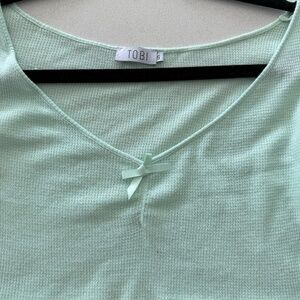 Super cute and flattering design - can be worn as a sleep shirt or a cute going out top! See photos for measurements. Fits a size S to M.