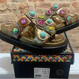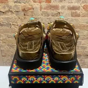 Kurt Geiger Gold Sandals with Colorful Gemstones