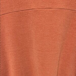 Chic terracotta ribbed shacket with pockets and button details. Ideal for layering.