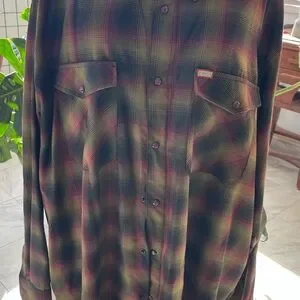 Casual button-down with dark green and red plaid. “The Freddy” 5x Men’s.