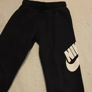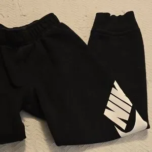 Classic black jogger sweatpants with bold white Nike logo. Perfect for active kids.