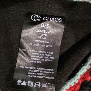 Black acrylic knitted winter beanie hat with colourful floral embroidery and a pompom at the top from Chaos Hats (purchased at Laura / Melanie Lyne store a few years ago) Black fleece lining Women's one-size-fits-all 100% acrylic outer 100% polyester lining Worn twice but I never really reach for it Very good used condition with minor fuzziness from storage