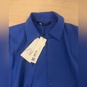 Zara Oversized Poplin Blue Shirt