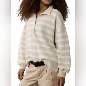 AE Big Hug Henley Sweatshirt American Eagle Beige Stripes NWT