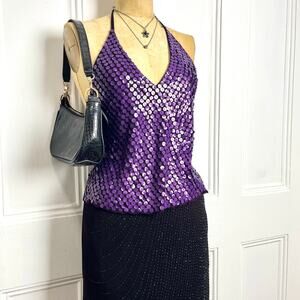 Espaço Fashion purple halter top with sequin circles going out top glam festive