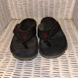 OluKai Kia'i II HLA Men's Flip Flops Sandals Black Red Size 9 US 42 EUR