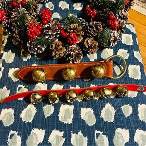 belsnickle brass bells like new sleigh bells leather strap christmas decor holiday farmhouse polished brass door hanger wreath mantel entryway high quality collectible