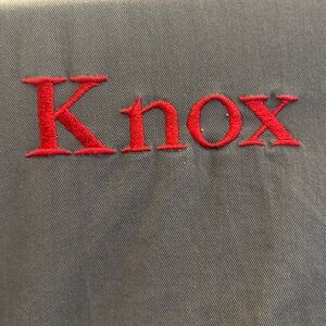 Chic chair cover for the kids size chair with a modern gray in color design. Perfect for kids' rooms. Name KNOX in red
