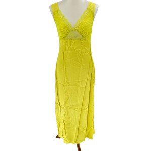Topshop Lime Yellow Sleeveless Midi Dress With Lace Detail UK 12 / US 8