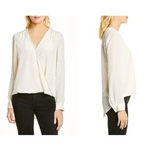 L'Agence Perry Swiss Dot Wrap Blouse Hi Lo Top White Long Sleeve Surplice XS New with Tags (NWT)