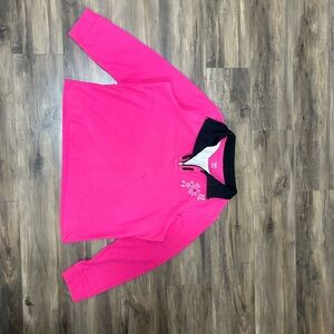 Chic black jacket featuring a bold pink lining. Perfect for casual wear.