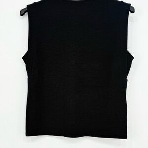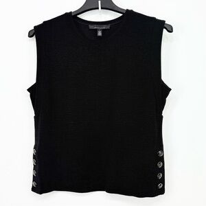 White House Black Market Black Ribbed Knit Button Sides Crew Pullover Vest Top