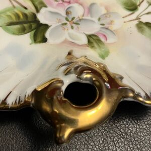 This is a vintage, hand-painted porcelain or ceramic dish.