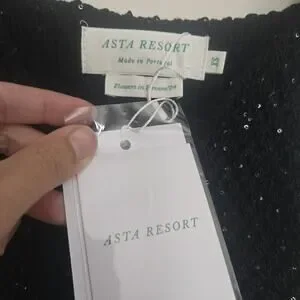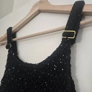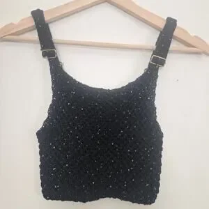 Asta Resort Grace Sequined Crochet Crop Tank Top XS Black NEW NWT