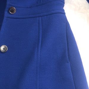 Elegant blue pea coat by J. Crew. Features a classic design with button closure. Perfect for stylish layering.