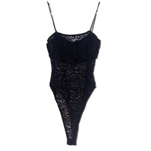 Le Lis Mesh Bodysuit Women Small Cami Tank Lace Edgy Leopard Sheer Black Party