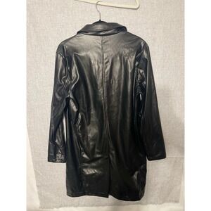 Vigoss Black Faux Leather Coat Women's Long Button Up Jacket Size L Blazer