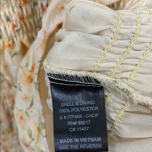 Style Profile: Embrace a charming look with this floral ruffle sleeve smocked top. Perfect for any casual outing, this cream-orange colored top adds a touch of elegance to your wardrobe.