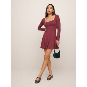 Reformation Coen Jersey Knit Long Sleeve Square Neck Mini Dress Size XS