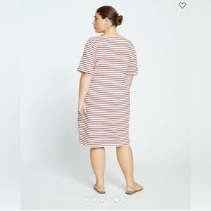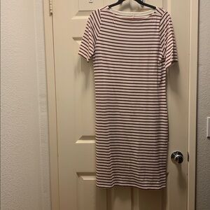 Universal Standard Belle Breton Stripe Jersey Dress, ecru/ burgundy, sz 10