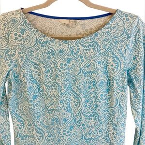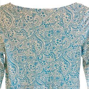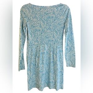 Pretty and polished, this Boden Mia long sleeve dress features a beautiful blue paisley pattern in a soft, stretchy modal-blend fabric. Flattering silhouette with a gently fitted shape and comfortable drape. Perfect for work, travel, brunch, or everyday wear. Boden dresses are known for quality and loyal repeat buyers.