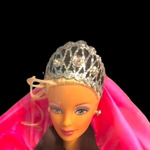 Elegant Barbie doll in a glamorous pink and black gown. Ideal for collectors.