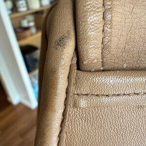 Great condition. Large, diffuse faint water spot on the back. Darkened and dry binding on corners. One mark on the binding. See all pics!