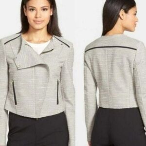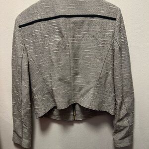 Elevate your style with this chic gray women's jacket featuring sleek black accents. Size 8. Timeless style.