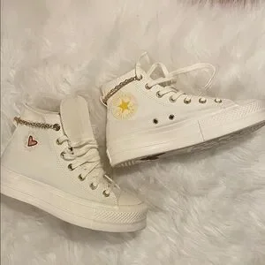 Converse All Star Cream Sneakers with Golden Chain