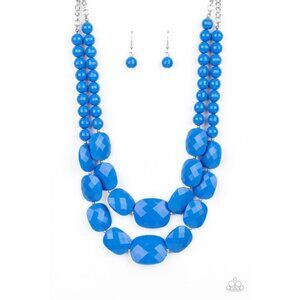Paparazzi Resort Ready Blue Large Beaded Double Layer Retro Necklace Earrings