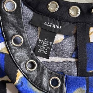 Alfani Blue and Black Abstract Top with Grommet Accents