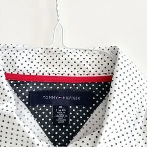 Tommy Hilfiger Mens Dress Shirt Long Sleeve Button Down Polka White Black XL