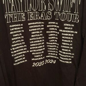 Celebrate The Eras Tour with this black long sleeve tee. Features iconic Taylor Swift graphic. Direct from venue - Live Photo