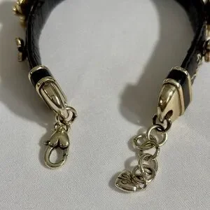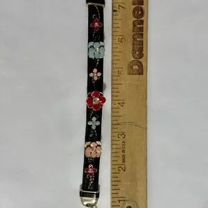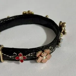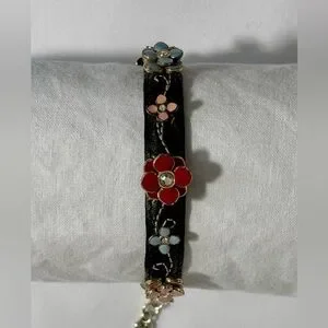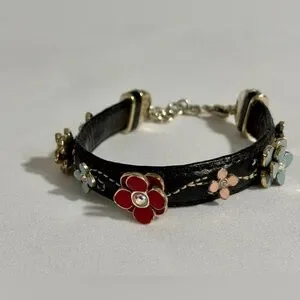 Vintage Brighton black leather and enamel flowers bracelet- lovely