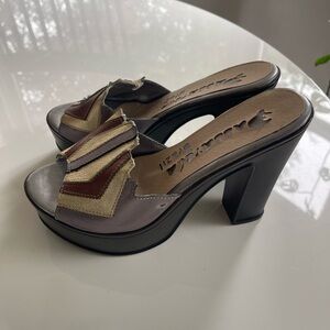 Fun 90s metallic leather platforms in near perfect condition! One small scuff to the leather (pictured).