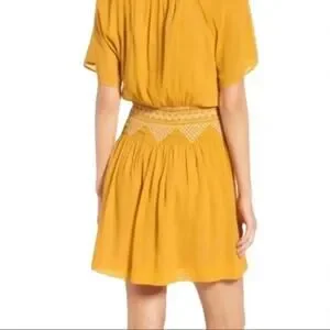 Madewell Embroidered Cinched Waist Boho Smoked Mini Dress Size 8