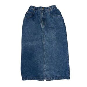Vintage Bedford Fair Womens Long Denim Skirt 8A Modest Slit Western Blue