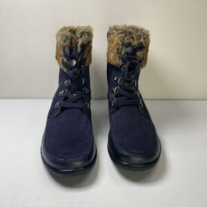 Clarks Leather Suede Faux Fur Kearns Ramsey Navy Blue Boots Size 8