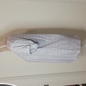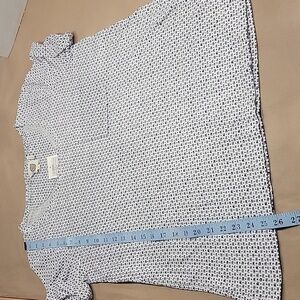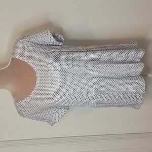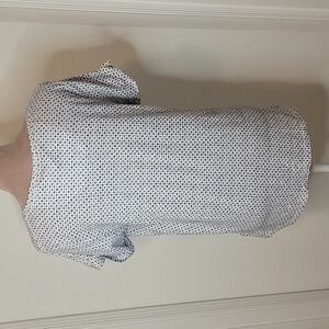 Anthropologie Lilka Size S, White with Navy Blue Motif Pattern Top NEW w/ Tags! Cute and Comfy with Single Front Pocket. Cuffed Sleeves. Please refer to measurements in photos to ensure proper fit.