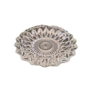 Vintage Heavy Clear Glass Round Ashtray 7.5 inches