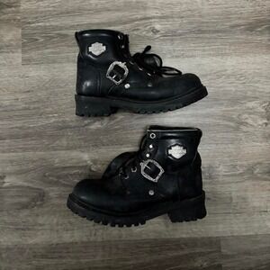 Vintage Harley Davidson Women's Leather Biker Boots With Silver Accents